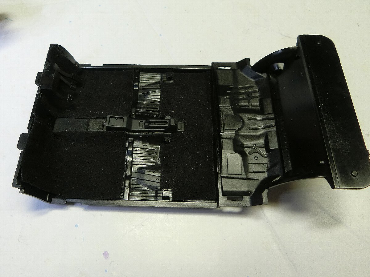 内装もハセガワでよくあるレース仕様展開の為フロアの鉄板むき出し、なのでダイソーの貼れる布の黒貼りましたけど、これ今売ってないみたいで・・・。