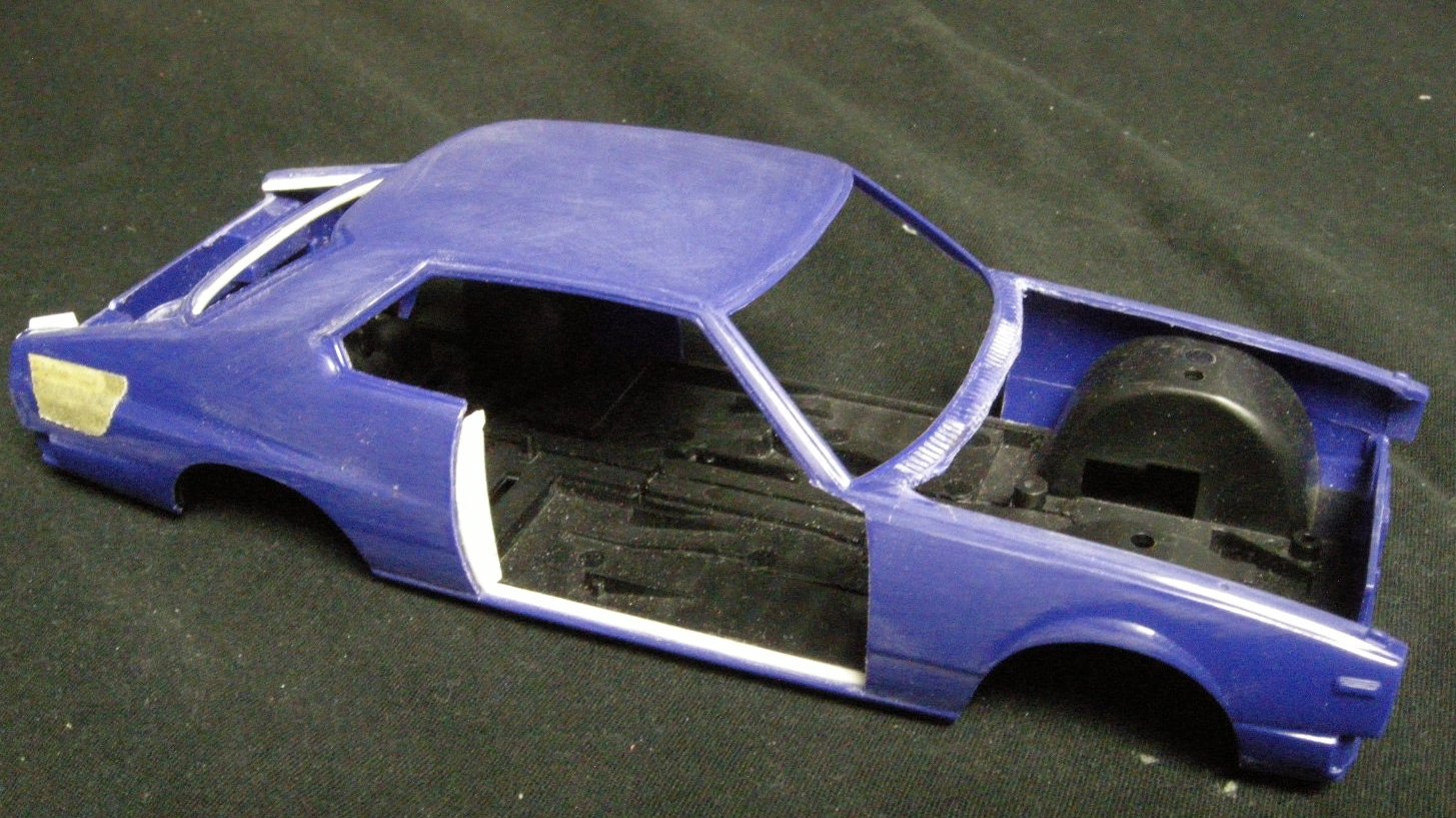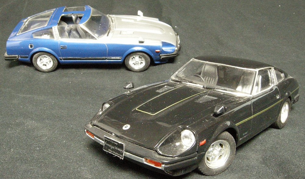手前のブラックのは数年前に再販された『プラスワンボディ』のものを改造して標準ルーフ化、サイドモールとバンパーのオーバーライダー除去、そしてエンブレム部のデカールによる新造によって初期型2000Z-Tに改造したもの。