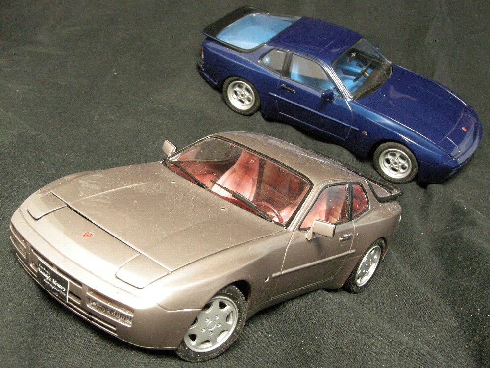 ポルシェファナティック的には亜流な944ターボをあえて選択しただけでもう拍手ものですが(これでも当時世界一のハンドリング性能を持つと言われ世界各国のスポーツカーが参考にしたといわれるほどの車)田宮に匹敵する作りやすさとリアリティ、そしてカーペット素材のペーパー(しかも裁断済み)をラゲッジスペース貼り付けるという新しい試みなど、勿論ボディも繊細な中に抑揚あふれる形状を的確に再現し飛行機のジャンルのトップに上り詰めた技術力の高さをうかがわせ実質新規参入に近いカーモデルのジャンルに殴りこみをかけたハセガワの心意気がひしひしと伝わる一品。