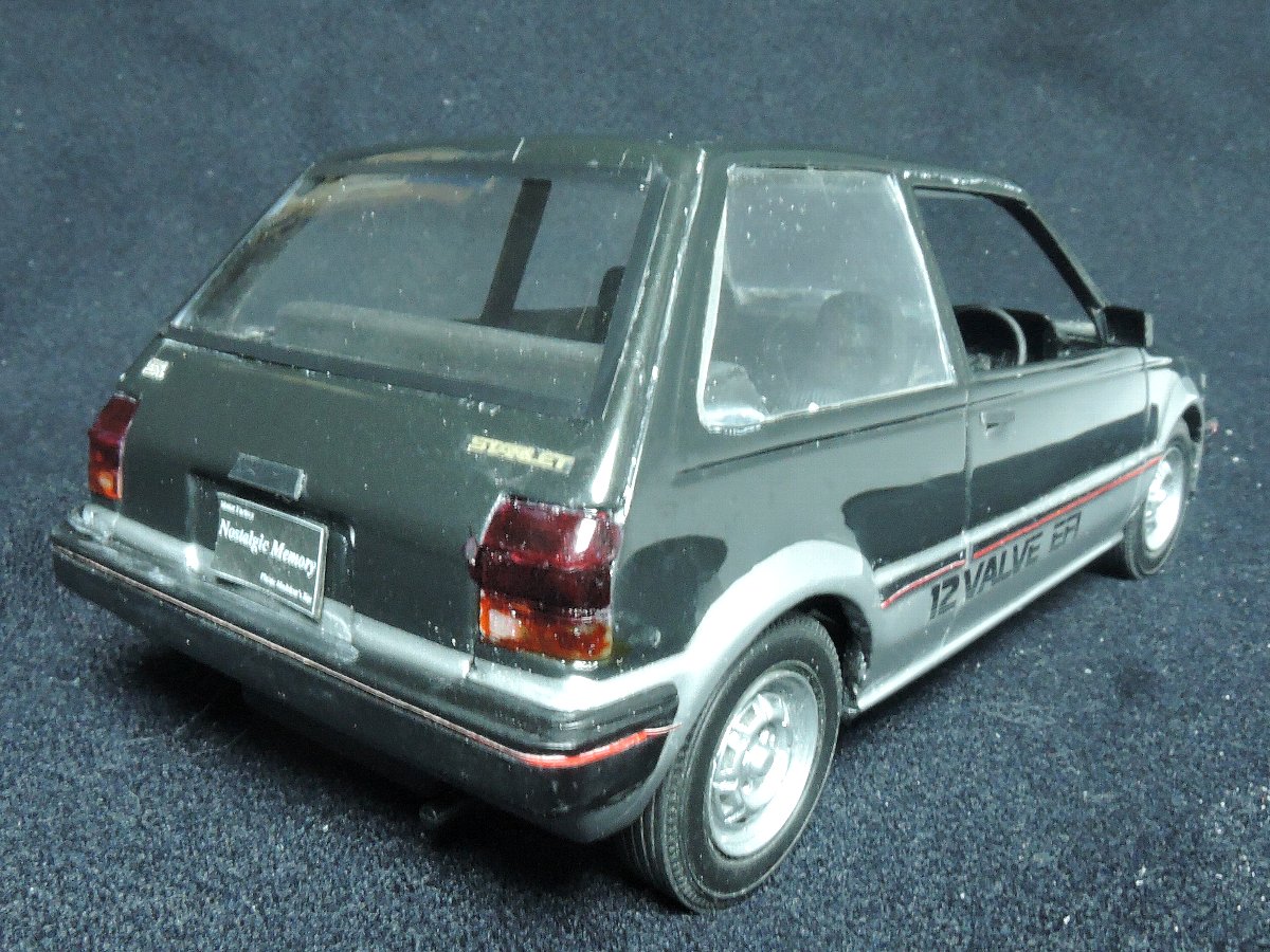これ作ろうとした切っ掛けはと言うと、MARUMASA製作所のMASAKICHIさんが同じイマイの1/20レックスをベースにこれの先代となるKP61型スターレットを作られた事で、1/20の軽自動車って1/24の小型車作るのに最適なのね・・・と思った事でして。