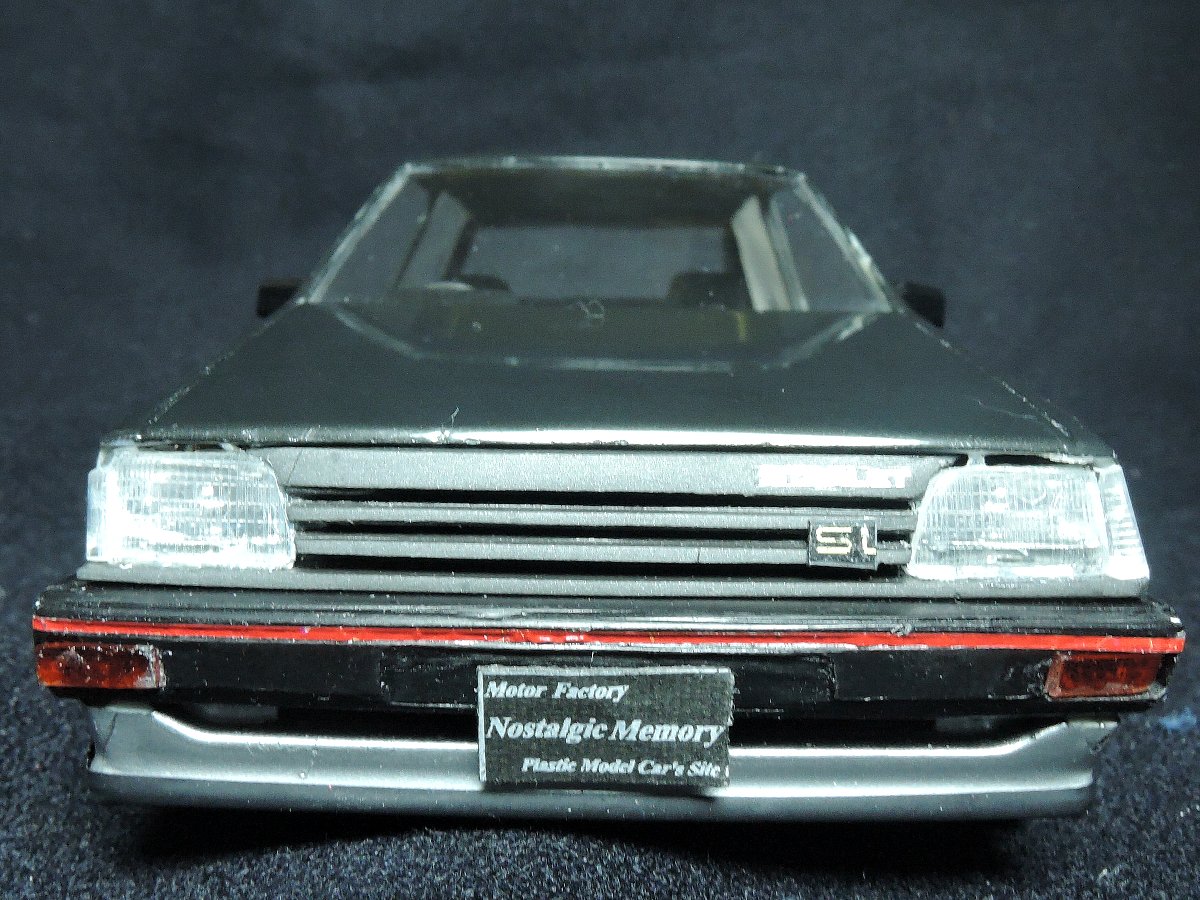 テールランプはハセガワジェミニ用を片側2コを上下でつないで無理やり加工、前後のバンパーはプラ板組み合わせて何とかでっち上げ、リアワイパーをリアスポ共々忘れる始末・・・