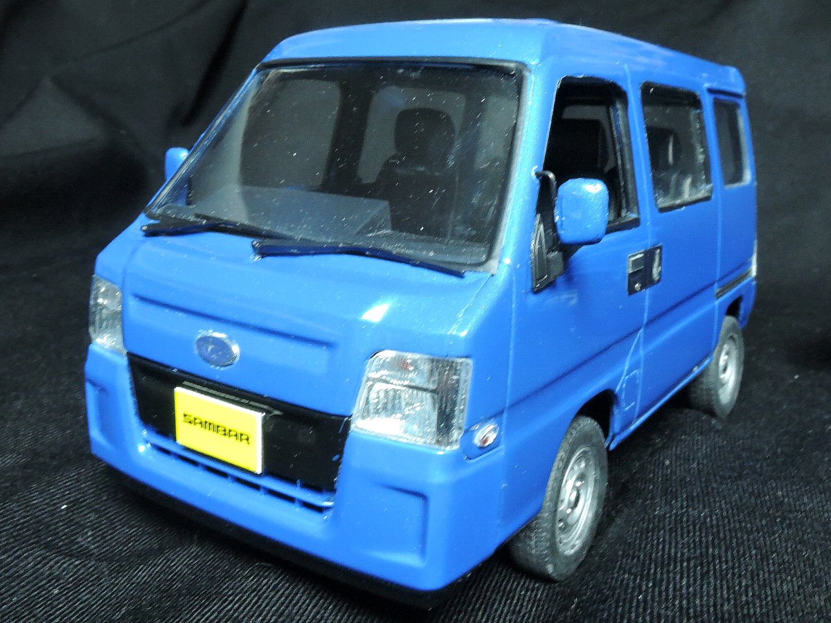 そんな最中並行してやっていたのがモデルカーズNo264働く車特集用にサンバートラックをワンボックスバンにしておりまして、限定車のWRブルーリミテッドにしていたんですが・・・