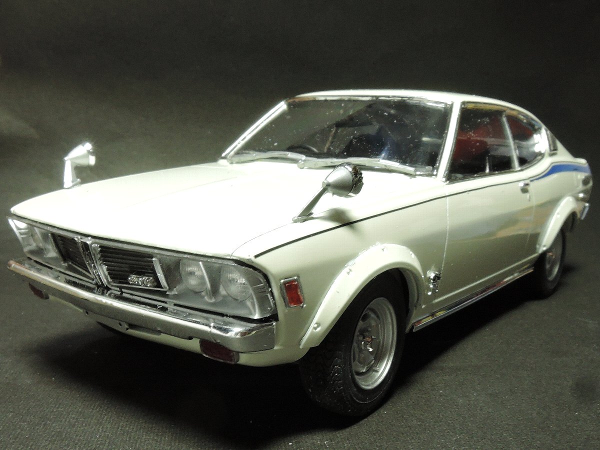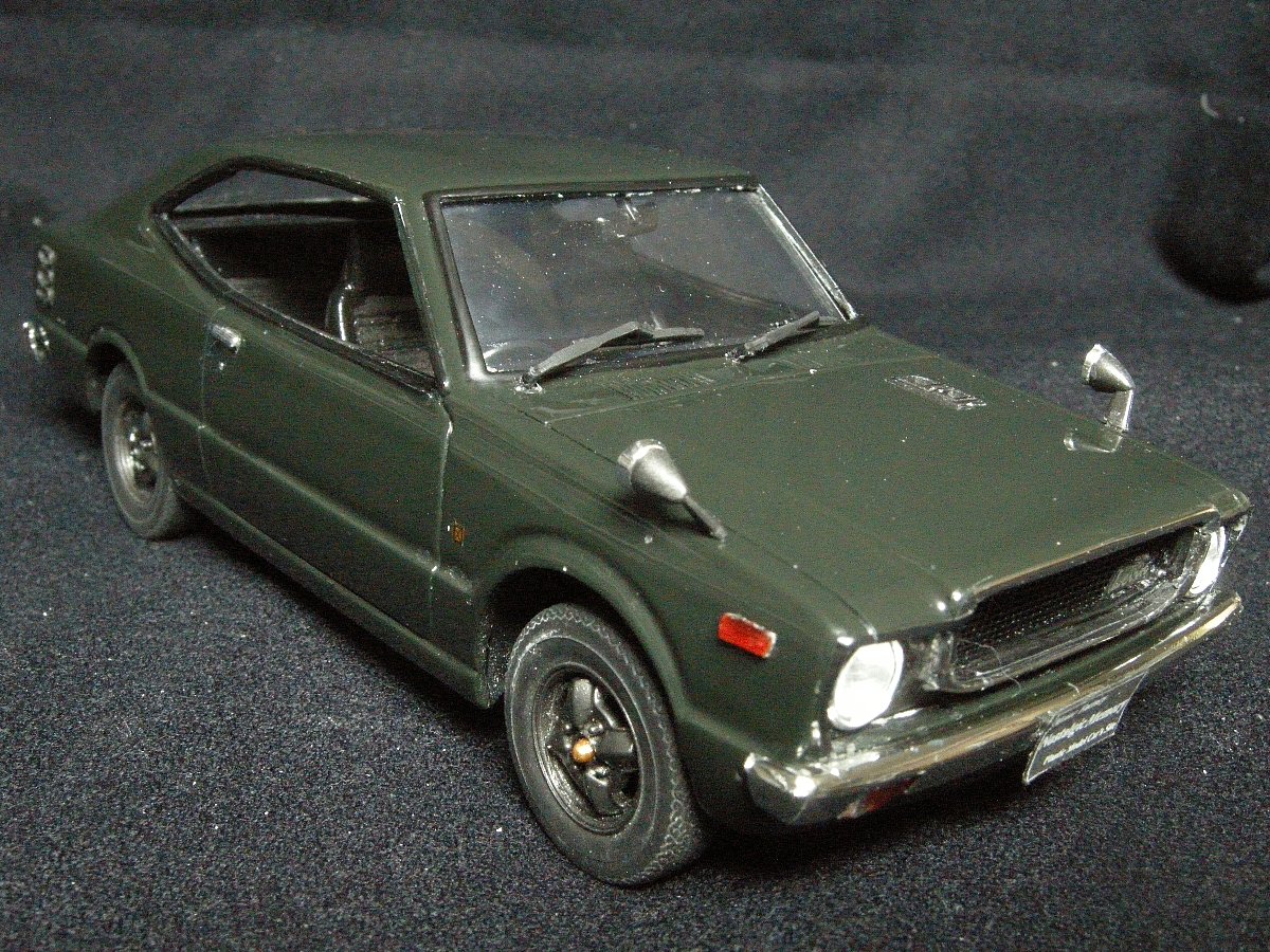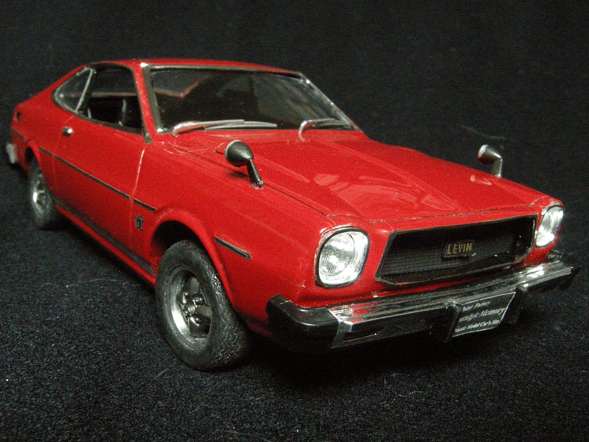 次にオートモデラーin横浜にて完成させました初代カリーナハードトップ2000GT、アオシマのセリカLBをベースに改造したもので、実はこれ、去年クリエイティビィのビルドオフ30祭り向けに製作していたもので完成が間に合わず中断していたものを形にしたものです・・・外装だけ(←マテや)