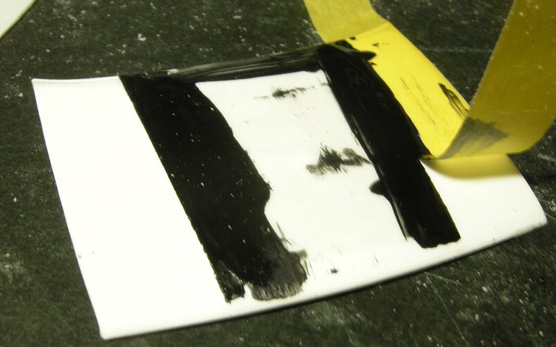 ウェーブの黒い瞬間接着剤を盛りつけ、テープを剥がします。