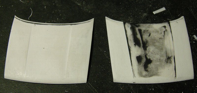 まず、窪んでいる部分に0.3ミリのプラ板を・・・・って汚いですけど、どの道削るので。