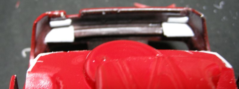 そのため、それに気づかずに組んでしまうとシャーシがボディの奥のほうに入り込む形となってしまいその状態で接着してしまったため、それでシャーシと内装の床面が持ち上がって結果シートが屋根に干渉したのではないでしょうか?