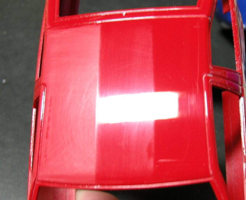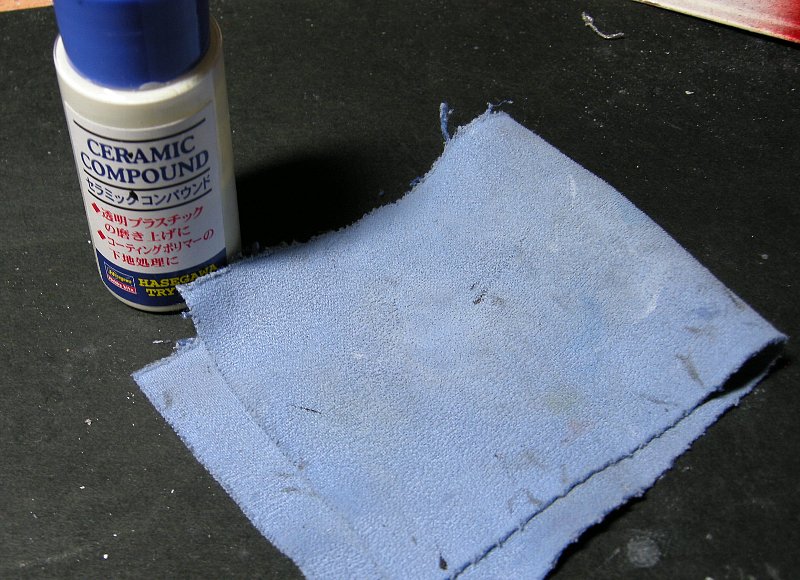 誤解の無いように書きますが、このコンパウンドで傷が消えないという意味ではなく、本来は車のボディ用としての商品であって手で磨くだけでなくポリッシャーにつけて磨く為の物でプラモ用には研磨力が強すぎるため、ある程度の所でとどめているということです。