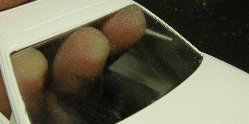 画像とっていないんですけれどガラスは前後一体、左右ドア部分のみ開口された状態で整形されていますのでフロント部分のみ、割らないように気をつけながら切り出して、この溝部分にはまるまでヤスリやら荒めのペーパーに当て木をして削ってはめ込まれるまで加工して・・・