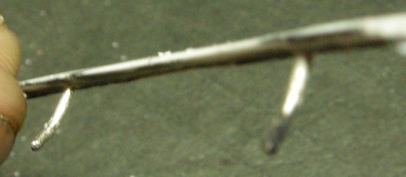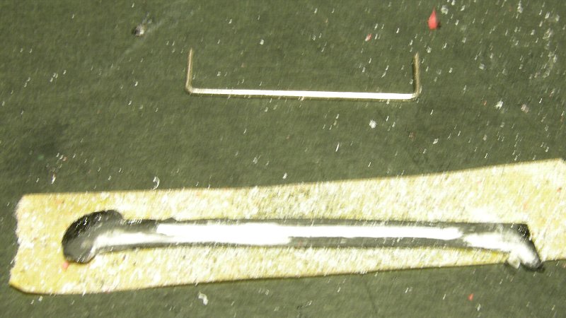 まず、瞬間接着剤で割れた部分をつけ、金属線を』コの字に曲げたモノを接着。