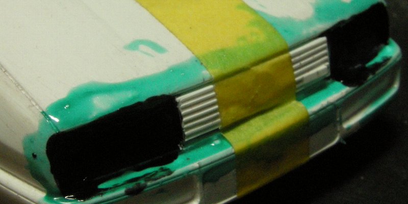 グリル周辺にマスキングゾルを塗ってグリルパーツを固定しつつ・・・