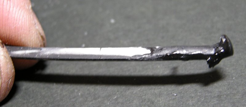 掘って削れた部分に虫ピンの柄を埋め込みます。