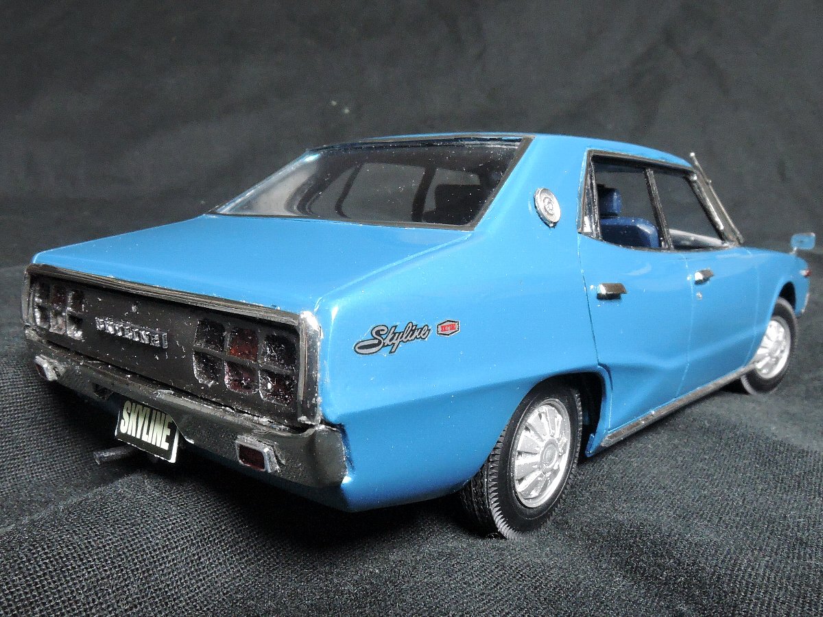 はい、現在発売中のモデルカーズ最新号No249特集『元祖・羊の皮を被った狼 4ドアのスカイラインが好きなんだ!』出展作、フジミの4メリをベースにロングノーズのGTからショートノーズのデラックス、そして幅が広すぎかつ前後バンパー廻りの形状の問題点に手を加えました。